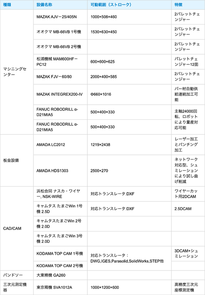 「この技術はできる?」に応える、実力のある設備ラインナップ。